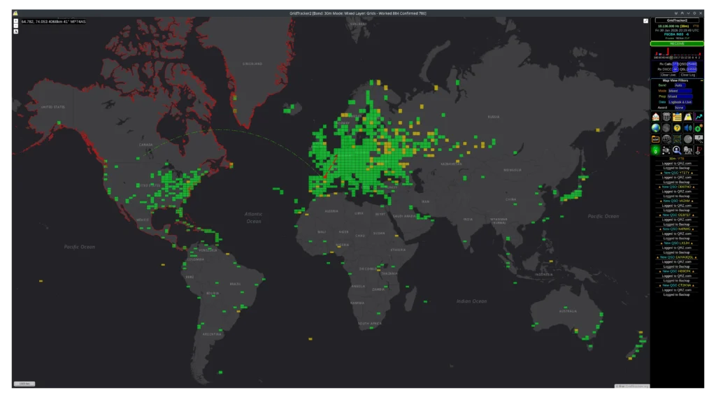Gridtracker is misschien niet onmisbaar maar ik zou het een drama vinden als het er ineens niet meer zou zijn. Het laat zien met wie we bezig zijn en welke vakjes we hebben gewerkt. Ook logt het naar verschillende cloud en local logboeken. Het maakt zelfs, indien gewenst, uitgebreid geluid met spraak en al. Het kan laten zien waar POTA stations on the air zijn en de lijst met functies gaat maar verder en verder. En dan is het ook nog zo stabiel als een blok beton! Ik heb nog nooit een crash gezien en het blijft gewoon z’n werk doen. Bugvrij zal het vast niet zijn maar het komt close! Ik kan er geen vinden in ieder geval.