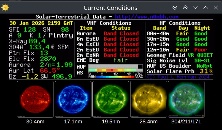 • 16) Band overzicht. Hoe zijn de condities en cijfers als Kp, SFI, A, K etc. Elke amateur kent het plaatje wel: